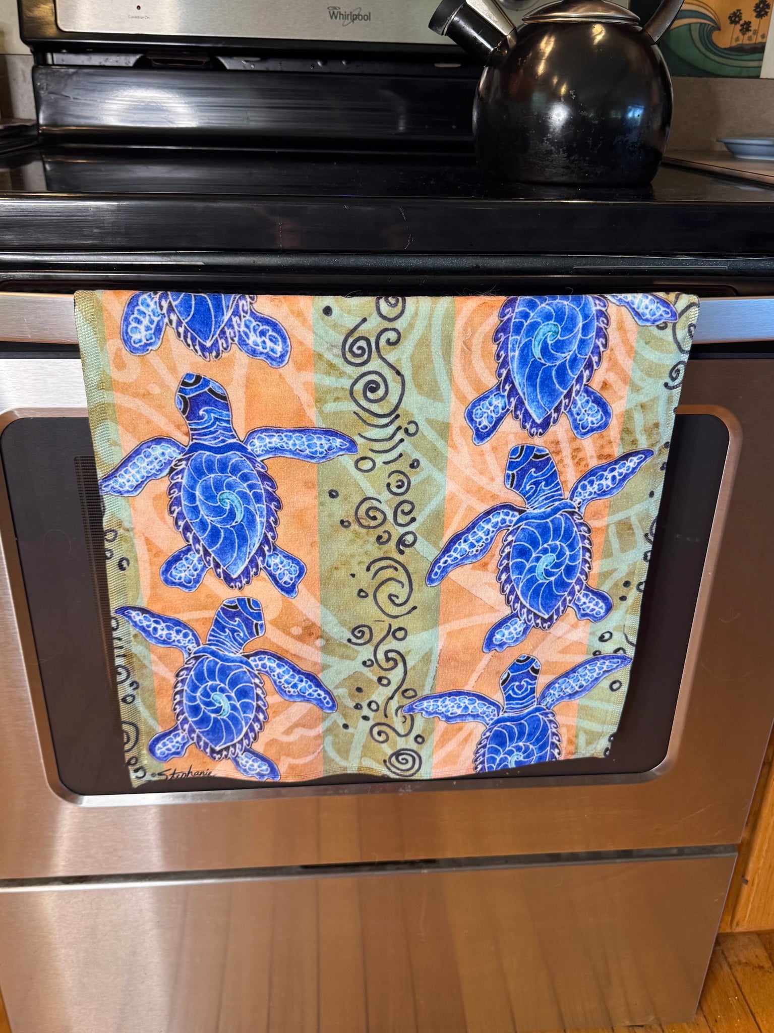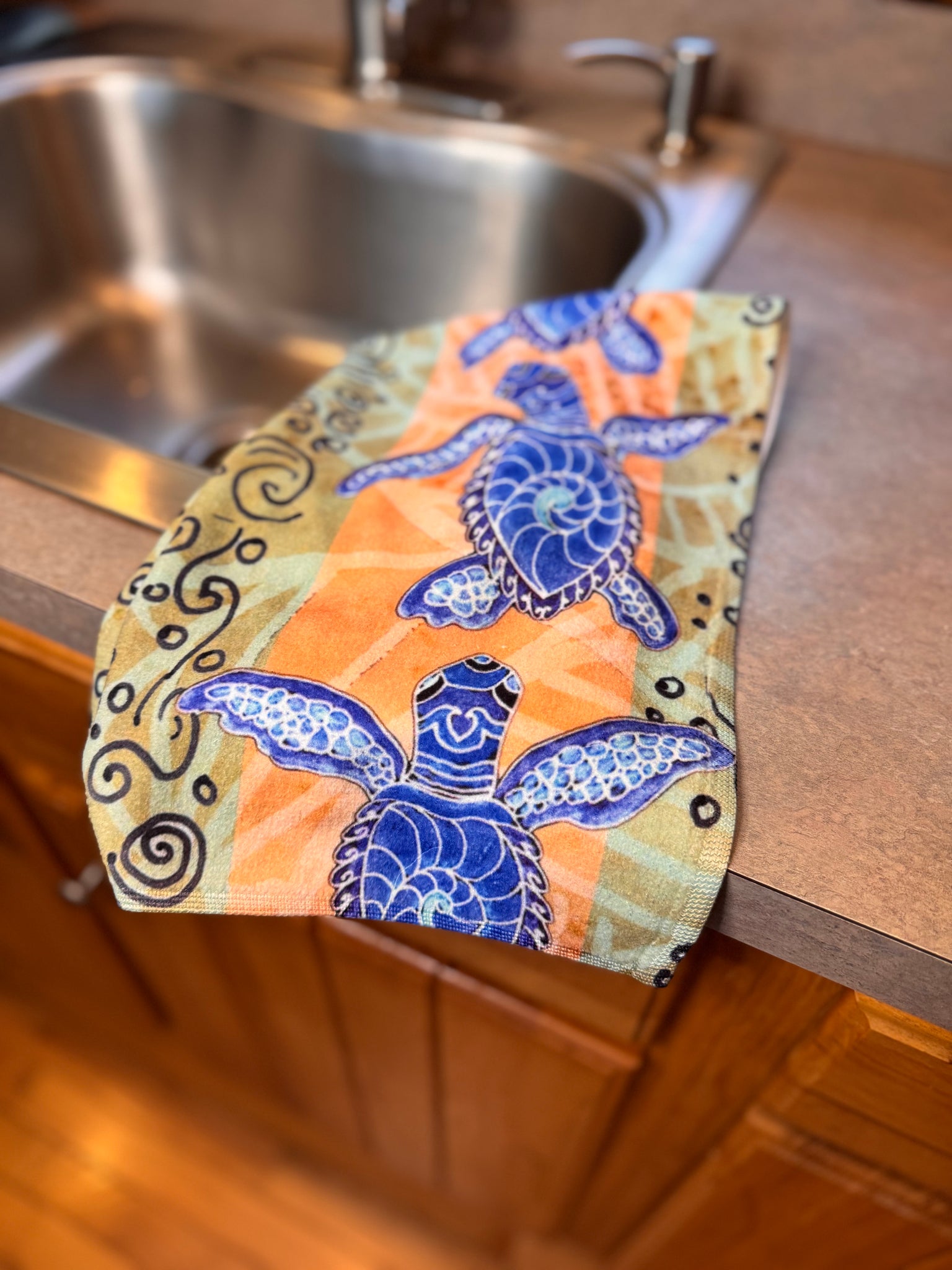 Add some art to your kitchen or bathroom with these fun and functional hand towels! They are 16” x 27” and have a microfiber vibrant front image with a soft, absorbent cotton backing. Machine washable cold and tumble dry low for easy care.
