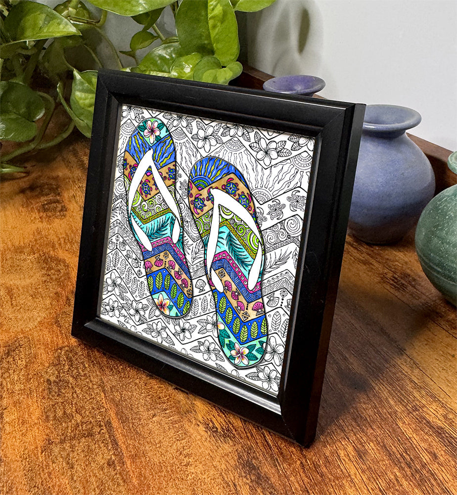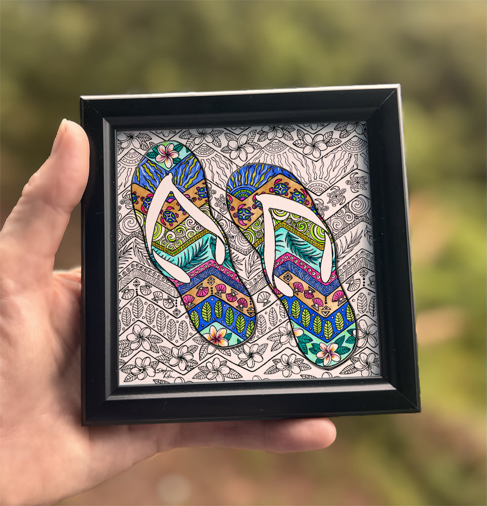 Small in size, big in charm! Each piece features Stephanie's vibrant colored pencil art — from sea turtles and lighthouses to coastal scenes — beautifully set in a sleek black frame. Perfect as a thoughtful gift, a desk accent, or a pop of color on a shelf, these mini artworks bring a touch of the coast into any space. Artwork is printed on special 4" x 4" MDF wood pieces with a gloss finish and framed. Frames have easels and hooks on the back for hanging too.