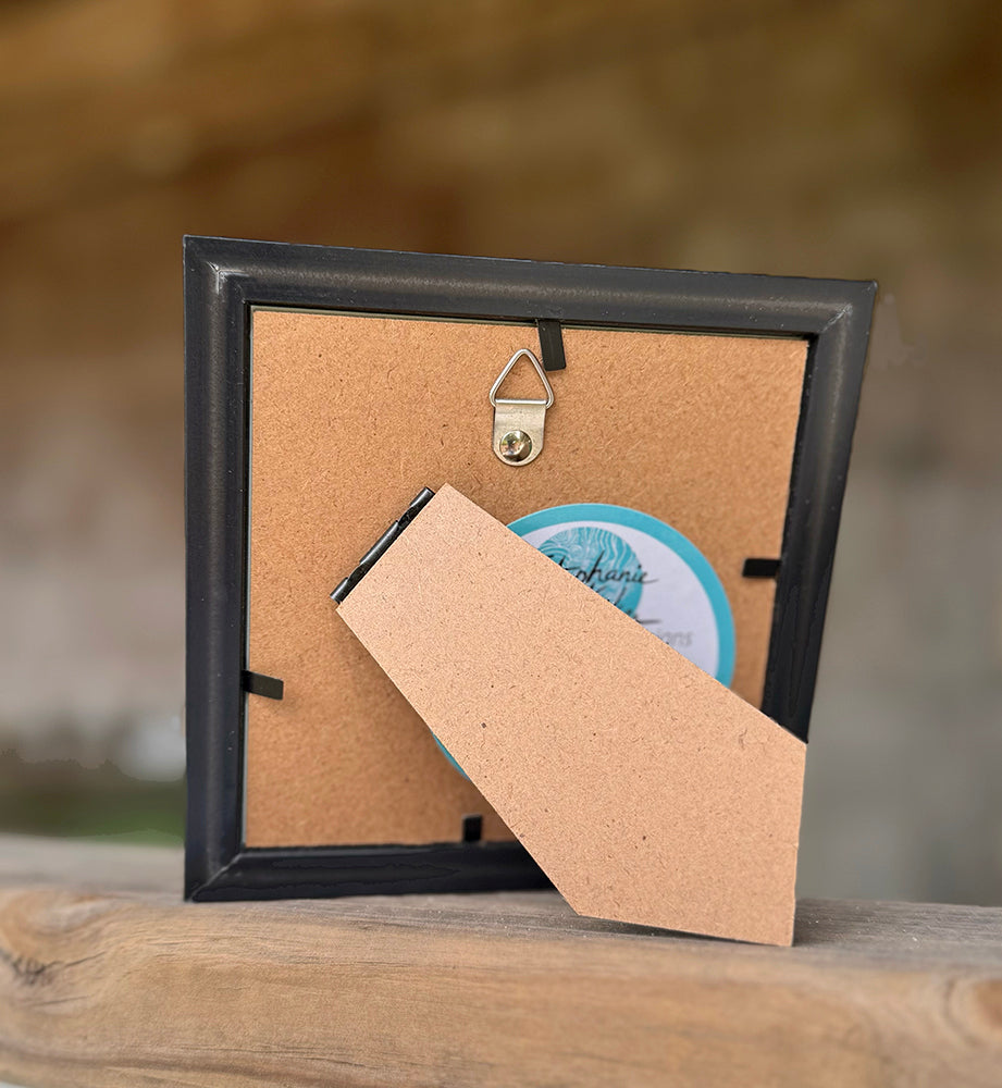 Small in size, big in charm! Each piece features Stephanie's vibrant colored pencil art — from sea turtles and lighthouses to coastal scenes — beautifully set in a sleek black frame. Perfect as a thoughtful gift, a desk accent, or a pop of color on a shelf, these mini artworks bring a touch of the coast into any space. Artwork is printed on special 4" x 4" MDF wood pieces with a gloss finish and framed. Frames have easels and hooks on the back for hanging too.