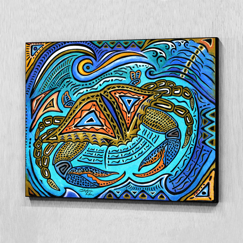 READY-TO-HANG WALL ART - These MDF wood panels have a gloss finish that pops the bright, fun colors of Stephanie's artwork. They are 5/8" thick with a black edge and sit flat against the wall with a mounting keyhole on the back.