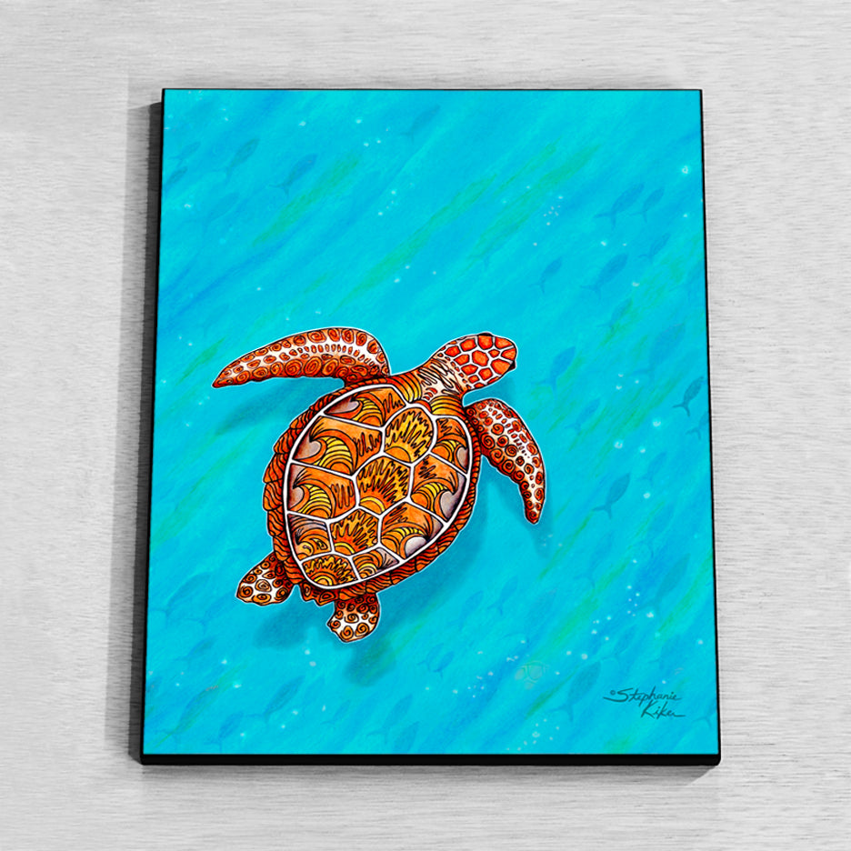 READY-TO-HANG WALL ART - These MDF wood panels have a gloss finish that pops the bright, fun colors of Stephanie's artwork. They are 5/8" thick with a black edge and sit flat against the wall with a mounting keyhole on the back.