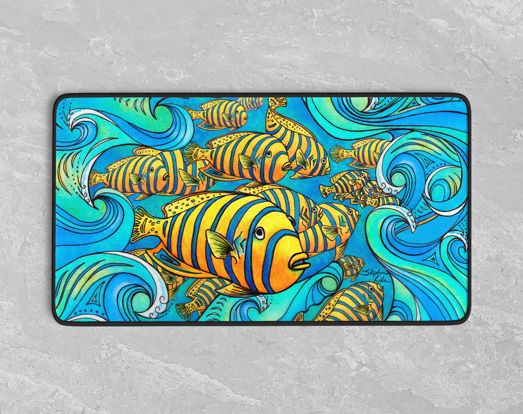 Featuring colorful, fun art...These 24" x 14" Desk Mats will brighten any workspace or office while protecting your desk from stains and marks. Offering a firm, even surface ideal for computer use, gaming, writing, typing, or crafting, they are made from high-quality neoprene material and have sewn edges for enhanced comfort and durability. The non-slip rubber backing ensures the mat won't slide while in use, offering a stable and reliable surface.